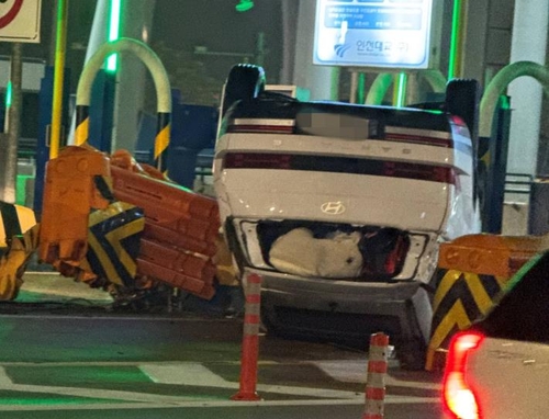인천대교 요금소에 '쾅', 뒤집어진 SUV…음주운전 30대 조사오늘(17일) 오전 3시 57분쯤 인천시 중구 인천대교 공항 방면 요금소에서 A(30)씨가 몰던 스포츠유틸리티차(SUV)가 시설물을 들이받고 전복됐습니다.이 사고로 A씨가 어지럼증을 호소했고, 요금소 시설물인 충격 흡수대가 파손됐