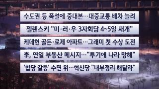 [이시각헤드라인] 2월 2일 라이브투데이■수도권 등 폭설에 중대본…대중교통 배차 늘려■수도권 지역에 많은 눈이 내린 가운데 정부는 중앙재난안전대책본부 1단계를 가동하고 비상 대응체계에 돌입했습니다.서울시는 대중교통 출근 집중 배차 시간대를 평소보다 30분 연장하고 비상