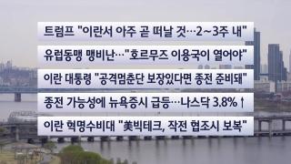 [이시각헤드라인] 4월 1일 라이브투데이■트럼프 "이란서 아주 곧 떠날 것…2∼3주 내"■도널드 트럼프 미국 대통령이 이란에서 곧 떠날 것이라고 예고했습니다.시점은 2~3주 내로 언급하며, 철수 전 이란과 합의가 이뤄질 수도 있을 것이라고 언급했습니다.■유럽동맹 맹비난