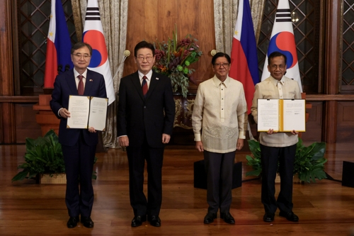 한-필리핀, AI·방산협력 확대 등 MOU·시행약정 10건 서명한국과 필리핀은 오늘(3일) 마닐라에서 열린 이재명 대통령과 페르디난드 로무알데스 마르코스 주니어 대통령의 정상회담을 계기로 인공지능(AI)·방위산업 등 핵심 전략 분야에 있어 협력을 강화하는 양해각서(MOU) 9건과 시행약정 개