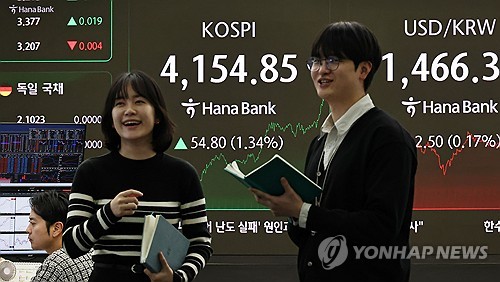 '널뛰기 장세' 코스피, 1% 상승…4,150선 마감코스피가 널뛰기 장세 끝에 결국 상승 마감했습니다.코스피는 오늘(8일) 전장 대비 1.34% 오른 4,154.85에 거래를 마쳤습니다.지수는 장중 박스권 등락을 이어가다 외국인의 매수세가 유입되며 1%대로 반등했습니다.종목별로는