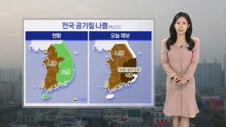 [날씨] 전국 대부분 공기질 나쁨 …내륙 큰 일교차 유의오늘도 공기질 상황이 나쁘겠습니다.서울과 인천, 경기와 충남에는 초미세먼지 재난 위기 경보가 발령 중이고요.이들 지역으로 초미세먼지 비상저감조치가 시행되겠습니다.현재 서쪽 지역의 초미세먼지 농도 '나쁨' 단계 보이고 있고요.인천에