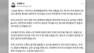 이 대통령, 막 내린 동계 패럴림픽 선수단에 "뜨거운 박수"이재명 대통령이 막을 내린 밀라노–코르티나 동계패럴림픽에 참가한 국가대표 선수단을 향해 "뜨거운 박수를 보낸다"라고 격려했습니다.이 대통령은 어제(16일) SNS에 "우리 선수단은 이번 대회 여러 종목에서 메달을 획득하며 역대 최