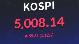 코스피 장중 5,020선 돌파…또 사상 최고치[앵커]어제(22일) 장중 '꿈의 5,000피'를 달성한 코스피가 오늘 또 한 번 5,000선을 돌파하며 상승세를 이어가고 있습니다.자세한 장중 시황, 취재기자 연결해 알아봅니다.김채영 기자.[기자]네, 코스피가 오전 장중 5,0