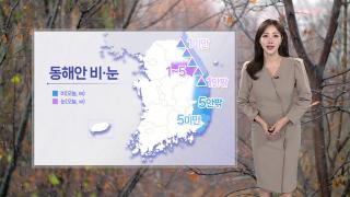 [날씨] 오후까지 동해안 비나 눈…내일 큰 일교차오늘 오후까지 동해안을 중심으로 비나 눈이 내리겠습니다.예상 강수량은 동해안에 5mm 안팎이 되겠고, 기온이 낮은 산간에는 1~5cm의 눈이 내려 쌓이겠습니다.내린 비나 눈이 얼어붙어 길이 미끄러운 곳이 많아, 조심해서 이동하셔야