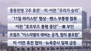 [이시각헤드라인] 4월 9일 라이브투데이■중동전쟁 '2주 휴전'…미·이란 "우리가 승리"■중동전쟁이 시작된지 39일 만에 미국과 이란이 2주간 휴전하기로 했습니다.양국은 자신들이 서로 승리했다고 주장했습니다.■'11일 파키스탄' 협상…밴스 부통령 합류■미국과 이란이 오