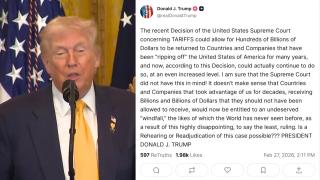 트럼프, 관세판결 재심 언급…"美 착취한 국가·기업들이 횡재"도널드 트럼프 미국 대통령이 연방대법원의 상호관세 위법 판결에 대한 재심리를 언급했습니다.트럼프 대통령은 현지시간 27일 SNS를 통해 관세에 대한 법원의 판결은 미국을 수년간 '착취해 온' 국가·기업들에게 수천억달러가 반환되도록