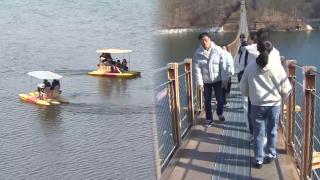 파주 대표 명소 마장호수 나들이…출렁다리 인기[앵커]서울 근교에서 자연을 만끽하고 스릴도 즐길 수 있는 호수공원이 있습니다.경기도 파주에 위치한 마장호수공원인데요.현장에 뉴스캐스터가 나가 있습니다.강수지 캐스터[캐스터]네.저는 지금 경기도 파주에 있는 마장호수공원에 나와 있