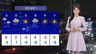 [날씨] 강추위 속 중부·경북 한파특보…주말 곳곳 눈아침 출근길 옷차림 따뜻하게 하셔야겠습니다.조금 전 밤 9시를 기해서 서울 등 중부와 경북 지역에 한파주의보가 내려졌는데요.북쪽에서 찬 공기가 밀려와 하루 만에 영하 10도 이상 급강하하겠습니다.내일 아침 서울은 영하 9도, 찬