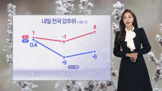 [날씨] 내일 아침 -10도 강추위…동쪽 대기 메마름 심화내일은 북쪽에서 찬 공기가 내려오며 날이 부쩍 추워지겠습니다.서울의 아침 기온은 영하 9도, 찬 바람에 체감 온도는 영하 14도까지 곤두박질하겠고요.낮에도 영하권 추위가 기승을 부리겠습니다.이에 따라 오늘 밤 9시를 기준으로 서울