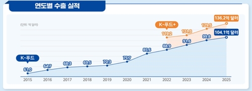 "K-매운맛 통했다"…지난해 K-푸드+ 수출 136억 달러로 '역대 최대'지난해 K-푸드 플러스 수출액이 136억 달러를 돌파하며 역대 최고치를 경신했습니다.농림축산식품부가 오늘(12일) 발표한 '2025년 K-푸드 플러스 수출 실적'에 따르면 전체 수출액은 전년보다 5.1% 증가한 136억 2천만 달