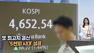 [현장한컷] 또 최고치 경신, '5천피 시대' 성큼…"경제 공부하자" 투자서 코너 '북적'<현장 한 컷>입니다.코스피가 연초부터 말 그대로 질주 모드입니다.전 거래일보다 1% 넘게 뛰며 4,630선 대에 출발했고, 사상 처음으로 장중 4,650선을 돌파해 또다시 최고가를 갈아치웠습니다.새해 들어 매 거래일