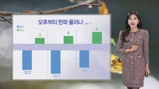 [날씨] 오후부터 추위 풀려…중부 최대 8㎝ 대설오후부터 추위가 풀리겠습니다.한파특보도 모두 해제됐는데요, 전국이 아침에 영하권을 보였지만, 낮에 모두 영상권으로 올라서며 예년 이맘때 기온을 회복하겠습니다.자세한 한낮 최고기온 보시면 서울 3도, 광주와 부산 7도로 어제보다 5