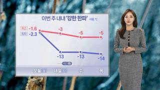 [날씨] 내일부터 본격 한파…서울 아침 -13도절기 '대한'인 내일부터는 추위 대비 단단히 해주셔야겠습니다.북쪽에서 찬 공기가 내려오며 강추위가 기승을 부리겠습니다.내일 서울의 아침 기온은 영하 13도로 오늘보다 10도가량 떨어지겠고, 찬 바람에 체감 추위는 더 심하겠습니다.