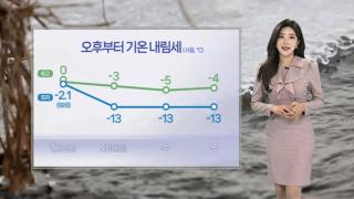 [날씨] 오후부터 기온 '뚝'…이번 주 올겨울 최강 한파오늘 오후부터 기온이 뚝 떨어지겠습니다.기온이 점점 내림세를 보이다, 특히 내일은 서울 -13도 등, 전국이 본격적으로 추워지겠습니다.올겨울 들어 가장 긴 최강 한파가 나타날 전망입니다.오후부터 강풍에 체감하는 추위가 더 심하겠습