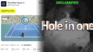 폭격 후 '홀인원'…백악관 또 전쟁 홍보 밈 논란[앵커]백악관이 이란 전쟁을 게임에 빗댄 영상을 올려 논란을 낳고 있습니다.공습 직후부터 전쟁을 소재로 한 밈을 잇따라 게시하고 있는데요.참혹한 전쟁을 희화화하고 있다는 비판이 쏟아지고 있습니다.김예린 기자입니다.[기자]게임 화면