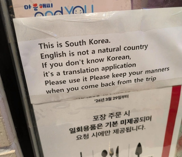 "한국어 못하면 번역기 쓰세요"…한국 카페 저격 글 올렸다가 '역풍'국내 카페에서 포착된 '영어 주문 금지' 안내문을 두고 해외 누리꾼들 사이 논란이 불거졌습니다.현지시간 25일 영어권 최대 온라인 커뮤니티인 '레딧(reddit)'에는 "서울 종로에 있는 한 프랜차이즈 카페의 안내문" 사진이 올라