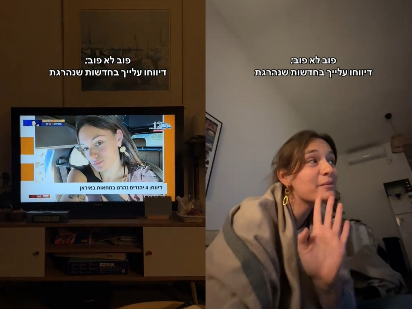 "내가 이란 반정부 시위하다 사망?"…TV 보던 이스라엘 여성 '황당'이스라엘에서 멀쩡히 집에 있던 한 여성이 자신이 '이란에서 사망했다'는 뉴스 속보를 접하는 황당한 일이 벌어졌습니다.지난 25일(현지시간) 저녁 이스라엘 지상파 방송 채널12는 "이란에서 벌어진 시위 도중 유대계 이란인 4명이 사