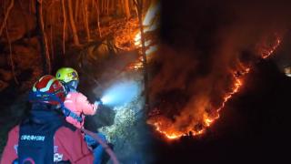 경남 밀양 산불 확산 대응 2단계 격상…총력 대응[앵커]어제(23일) 오후 4시 10분쯤 경남 밀양의 한 야산에서 발생한 산불이 확산하면서 산림청이 대응 단계를 2단계로 격상했습니다.산불 피해 면적은 축구장 약 150개 규모에 이릅니다.이화영 기자의 보도입니다.[기자]어제(23