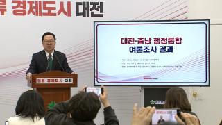 대전 시민 71.6% "행정통합, 주민투표 필요"대전·충남 행정통합과 관련해 대전 시민 70% 이상이 주민투표가 필요하다고 밝혔습니다.이장우 대전시장은 어제(23일) 기자회견에서 대전 시민 2,000여 명을 대상으로 여론조사를 실시한 결과, 71.6%가 주민투표가 필요하다고 응