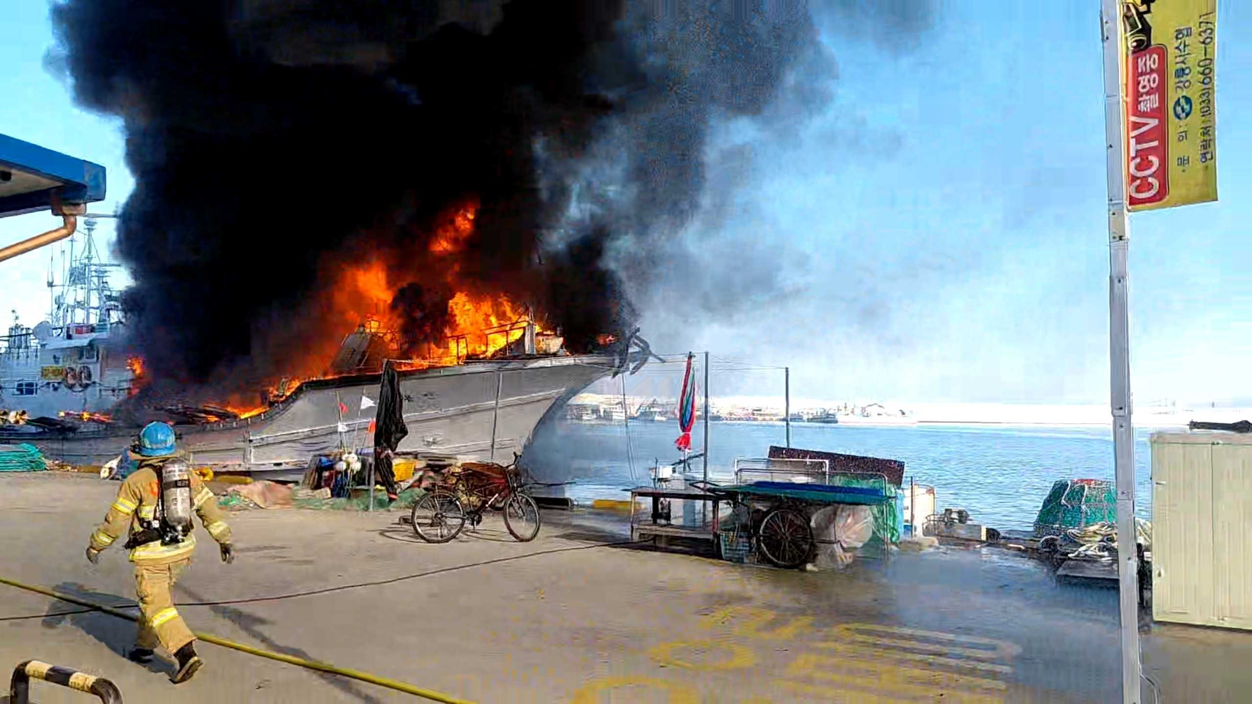 강릉 주문진항 선박 화재 20분 만에 초진…해양오염 없어8일 오후 4시 30분쯤 강원도 강릉시 주문진항 인근에 정박해 있던 72톤급 선박에서 화재가 발생했습니다.소방당국은 인력 68명과 장비 23대를 투입해 20여 분 만인 오후 4시 55분쯤 큰 불길을 잡았습니다.다만 선박 내부에 기