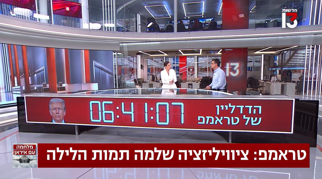 이스라엘 공영방송, 최후통첩 '카운트다운' 중계…"문명 파괴 기다리나" 논란미국과 이란이 극적으로 휴전 합의에 성공한 가운데, '최후통첩' 시한을 앞두고 이스라엘 국영방송 채널13은 스튜디오에 '데드라인 카운트 다운 시계'를 설치해 보도해 논란이 일고 있습니다.앞서 지난 6일 도널드 트럼프 미국 대통령은