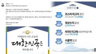 이 대통령 "최다·최고·최대 성과 추려…코스피 최고치 경신"이재명 대통령이 설을 앞두고 민생과 경제, 외교·안보 분야 등에서 이룩한 성과를 직접 공개했습니다.이 대통령은 오늘(15일) 유튜브 커뮤니티에 "설을 앞두고 우리 정부가 이뤄낸 민생과 경제, 외교·안보 등의 분야에서 역대 최다,