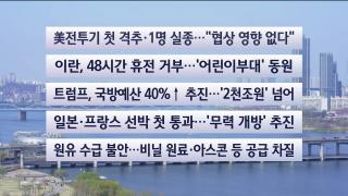 [이시각헤드라인] 4월 4일 토요와이드(11시)■美전투기 첫 격추·1명 실종…"협상 영향 없다"■미국의 F-15 전투기와 A-10공격기 두대가 전쟁 시작 후 이란 상공에서 격추돼 1명이 실종됐습니다.트럼프 대통령은 협상에는 전혀 영향이 없다고 했습니다.■이란, 48시간 휴전