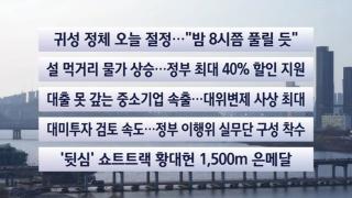[이시각헤드라인] 2월 15일 일요와이드(17시)■귀성 정체 오늘 절정…"밤 8시쯤 풀릴 듯"■설 연휴 둘째 날인 오늘 귀성 차량이 몰리면서 이번 연휴 기간 중 가장 심한 정체가 곳곳에 이어지고 있습니다.정체는 저녁 8시를 넘어서야 해소될 전망입니다.■설 먹거리 물가 상승…정부