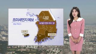 [날씨] 오늘 전국 초미세먼지 '나쁨'…큰 일교차 주의오늘도 마스크 착용으로 호흡기 건강 지켜주셔야겠습니다.어제 유입된 미세먼지로 공기질이 좋지 않은데요.전국 곳곳의 초미세먼지 농도가 '나쁨' 수준 보이겠습니다.여기에 안개가 뒤엉키면서 낮 동안 연무가 끼는 곳도 있겠습니다.아침엔 곳