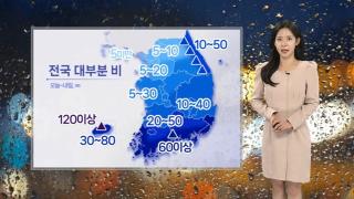 [날씨] 전국 건조함 달래줄 비 …남해안, 제주 강한 비오늘은 전국에 비가 내리겠습니다.오전에 호남과 제주를 시작으로, 오후부터는 충청과 영남에도 비가 오겠고요.그 외 중부지방은 밤부터 비가 내리겠습니다.내일 오전에 대부분 그치겠습니다.이번에 남해안과 제주를 중심으로 강하고 많은 비가