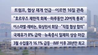 [이시각헤드라인] 4월 15일 라이브투데이■트럼프, 협상 재개 언급…이르면 16일 관측■트럼프 대통령이 "향후 이틀 안에 뭔가 일어날 수도 있다"며 멈춰섰던 이란과의 종전 협상 재개 가능성을 언급했습니다.이번주 중 파키스탄에서 2차 협상이 열릴 가능성이 제기됩니다.■"호