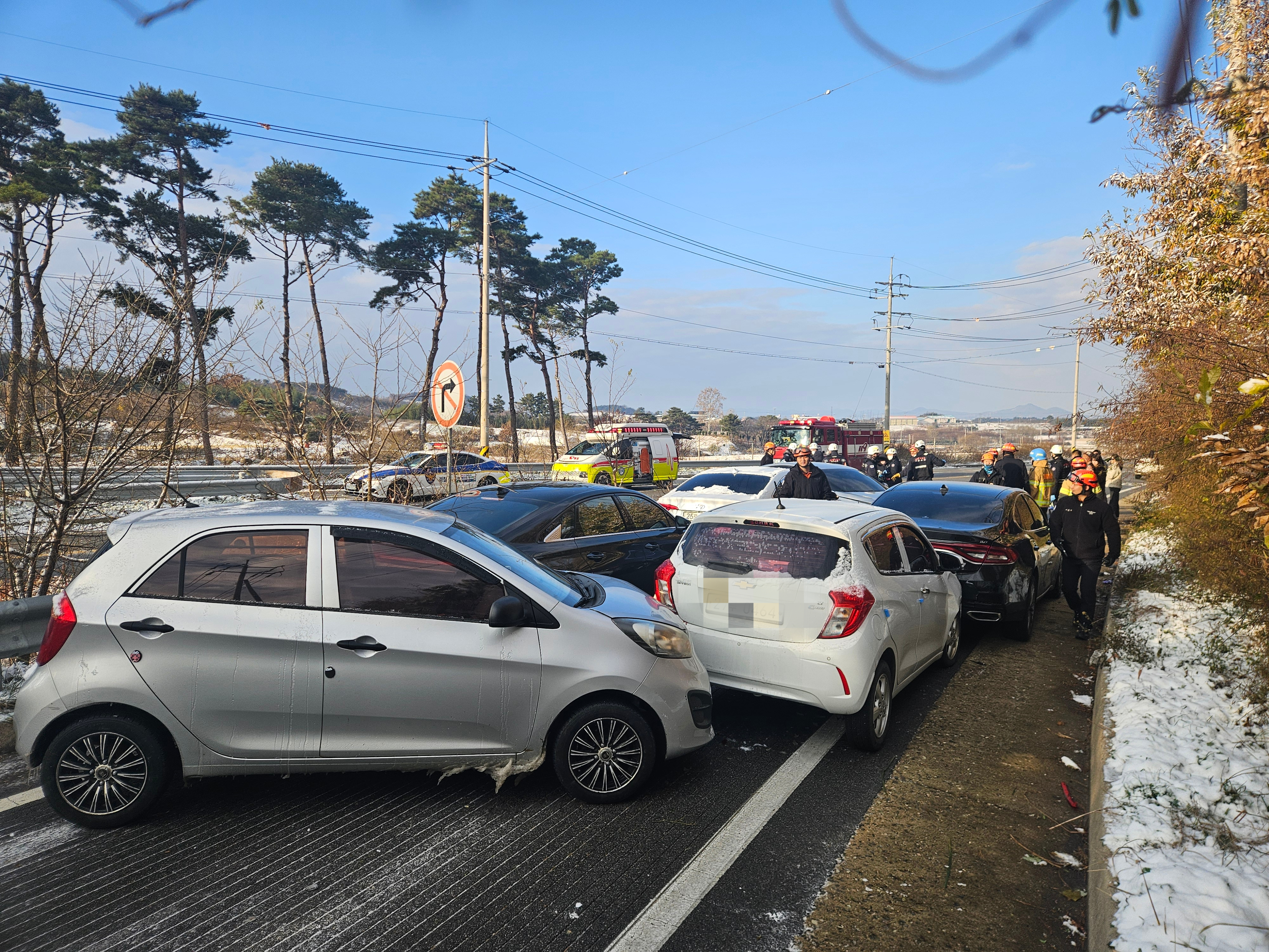 전북 고창서 차량 8대 빙판길에 미끄러져…4명 경상오늘(4일) 아침 8시 50분쯤 전북 고창군 성송면 한 도로에서 빙판길에 차량 8대가 잇달아 부딪히는 사고가 발생했습니다.사고로 50대 승용차 운전자와 동승자 2명, 다른 50대 승용차 운전자 등 4명이 가벼운 부상을 입어 병원으