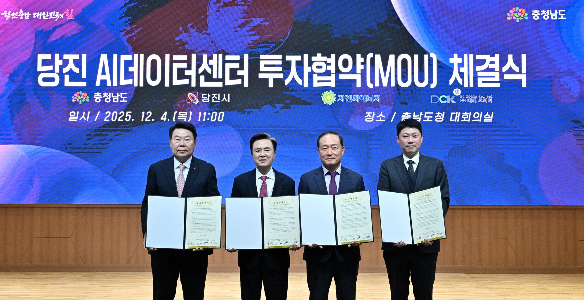 충남도, AI 데이터센터 추가유치…지엔씨에너지 등과 협약당진 석문산단에 2031년까지 2조 들여 건립…신규 200명 고용'인공지능(AI) 대전환'을 선언한 충남도가 2조원 규모 인공지능(AI) 데이터센터를 추가 유치했습니다.김태흠 지사는 오늘(4일) 도청 대회의실에서 오성환 당진시장,