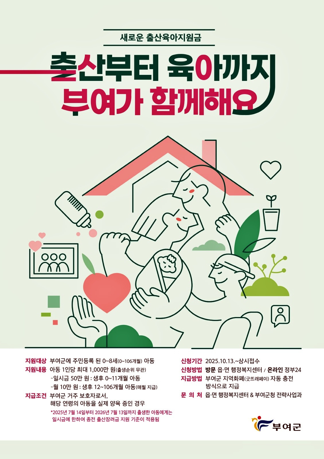 부여군, 출산육아지원금 첫 지급…981명에 3억8천만원충남 부여군은 '아이 키우기 좋은 도시' 조성을 위해 올해 처음 도입한 출산육아지원금을 지난 달 말 처음 지급했다고 오늘(4일) 밝혔습니다.출산육아지원금 지급은 출생 순위와 관계 없이 0세부터 만 8세까지 아동 모두에게 최대 1천