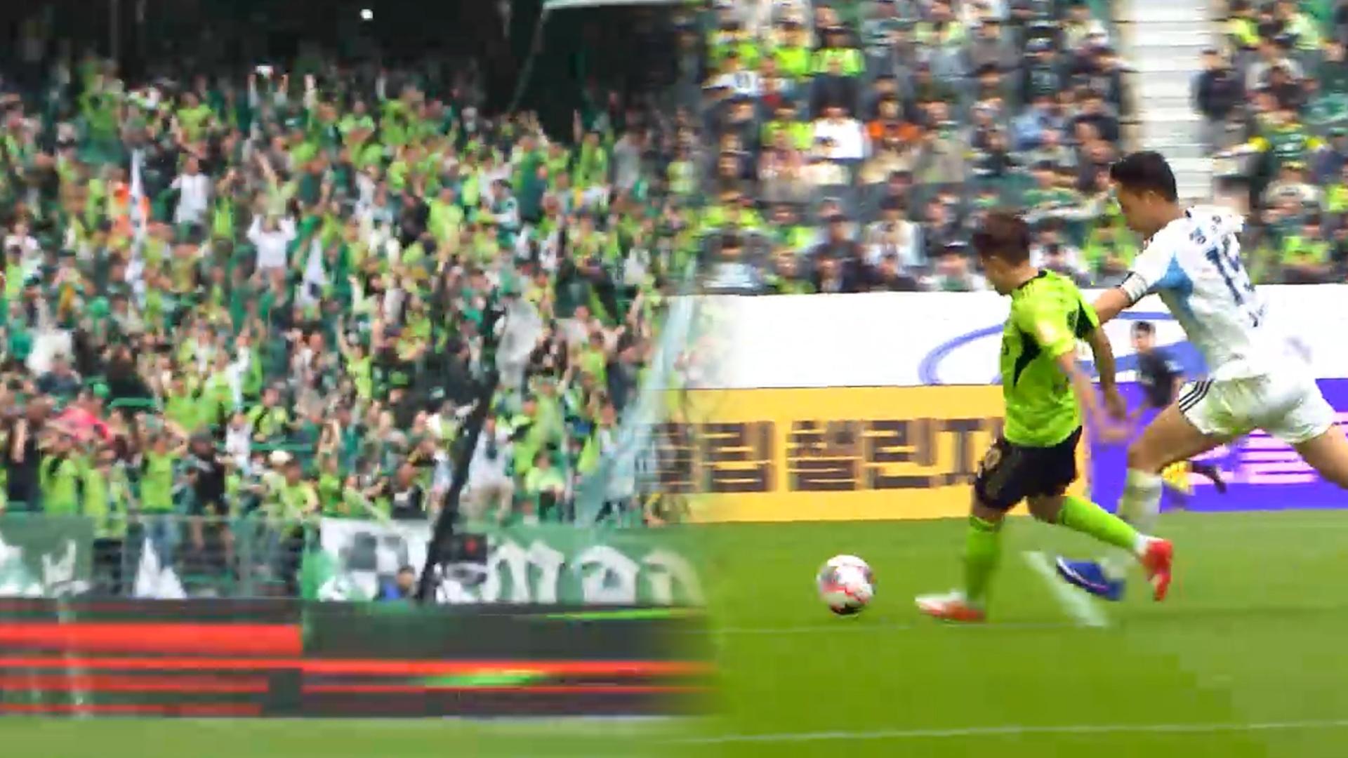 '이승우 쐐기골' 전북, 100번째 '현대家 더비' 완승전북 현대가 통산 100번째 '현대가 더비'에서 완승을 거뒀습니다.전북은 어제(4일) 전주월드컵경기장에서 열린 K리그1(원) 6라운드 홈 경기에서 울산 HD를 2-0으로 완파했습니다.전반 9분 만에 터진 조위제의 골로 앞서간 전북