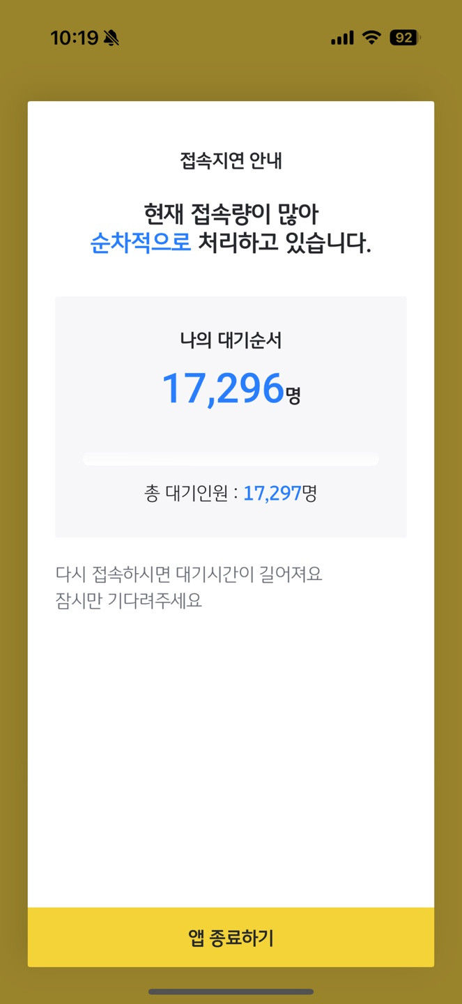 접속을 시도하면 "현재 접속량이 많아 순차적으로 처리하고 있다"는 문구와 함께 대기 인원이 집계됐습니다.
