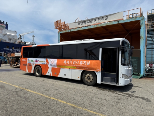 냉방 버스는 이번 달부터 오는 9월까지 운영되며 고정형 휴게실을 이용하기 어려운 현장 근무자들을 위해 마련됐습니다.