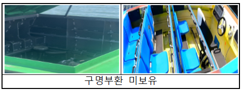 12인승 내외 모터보트를 보유한 7개소의 경우 구명튜브를 탑승정원의 30% 이상 구비해야 하지만, 이중 3개소가 적정 개수를 갖추지 않거나 아예 구비하고 있지 않아 개선이 필요했습니다.