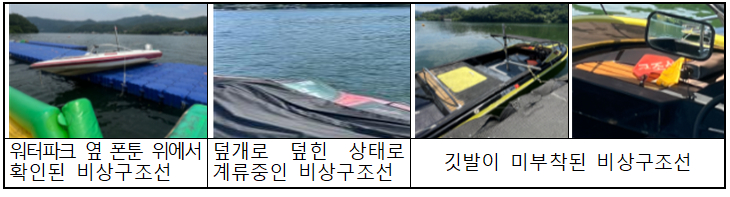 아울러 4개소는 반드시 구비해야 하는 비상구조선에 덮개가 씌워져 있거나 표시 깃발 등을 부착하지 않아 필요할 때 즉시 사용이 어려웠습니다.