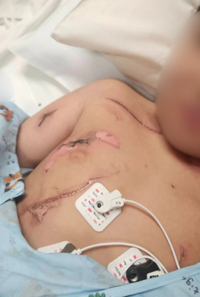 피부 이식 수술 후 모습[고펀드미 제공][고펀드미 제공]사고 직후 병원으로 이송된 그는 감전 부위에 피부 이식 수술을 받았습니다.