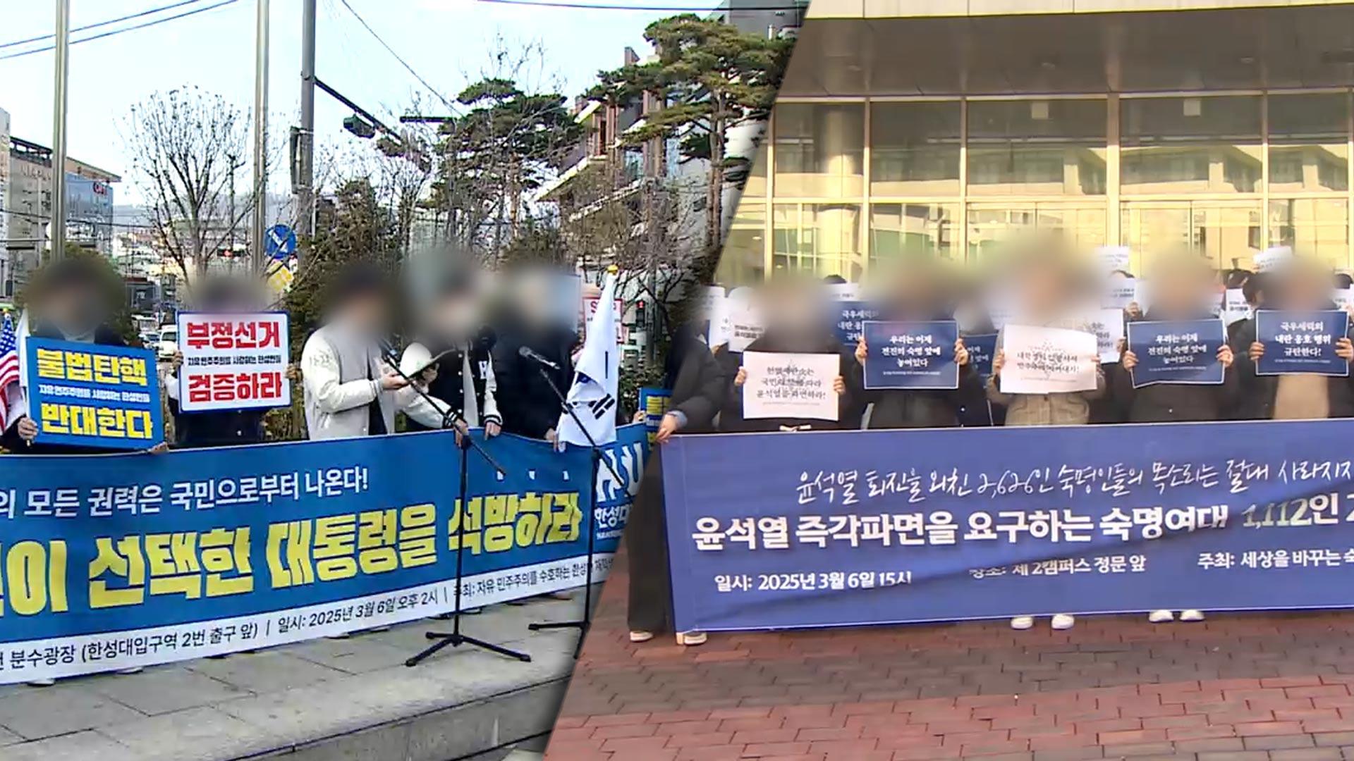 이번주에만 5개 넘는 대학에서 탄핵 찬반 집회가 이어지면서 윤 대통령의 탄핵을 둘러싼 학내 갈등은 한동안 계속될 전망입니다.