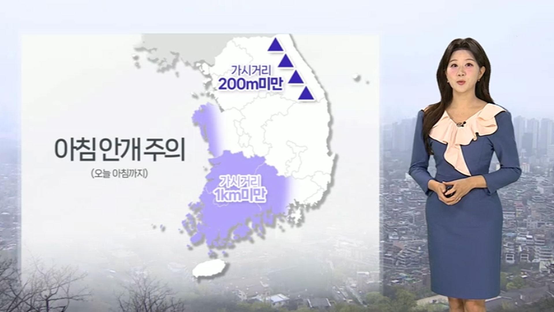 아침까지 충남 서해안과 호남, 경남 서부에 안개 끼는 곳이 있겠습니다.