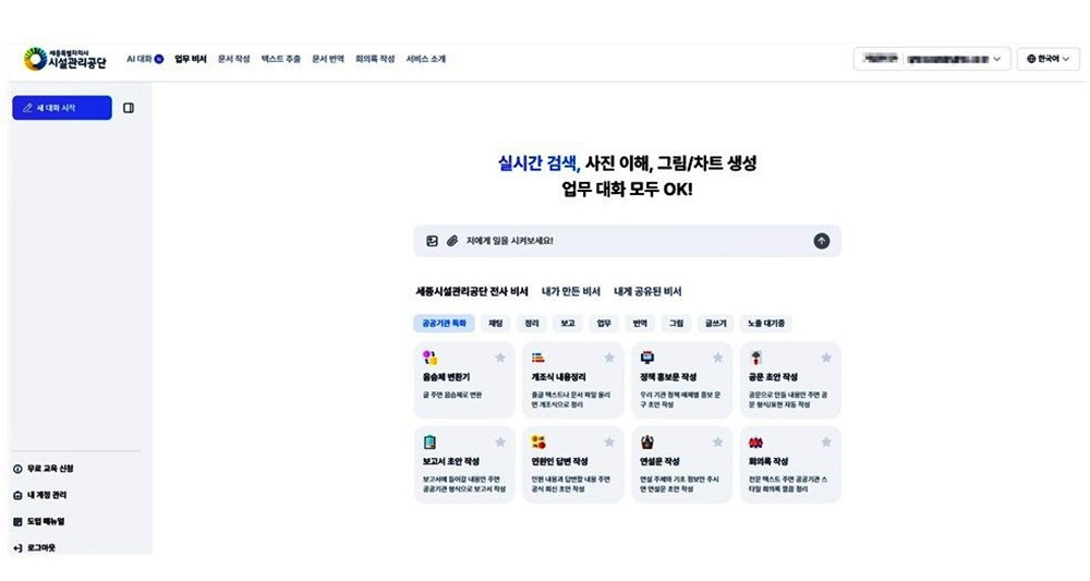 "행정효율·예산절감" 세종시설공단, AI 통합 플랫폼 도입세종시시설관리공단은 챗GPT와 제미나이 등 다양한 생성형 인공지능(AI) 프로그램을 하나의 환경에서 활용할 수 있는 AI 통합 플랫폼 구축하기로 했다고 오늘(24일) 밝혔습니다.기존 부서별ㆍ개인별로 구독해 사용하는 방식이 예산·계