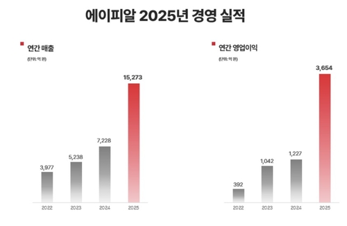 "K-뷰티 날았다"…에이피알 매출 1조 5천억 원 돌파에이피알은 연결 기준 작년 한 해 영업이익이 3,654억 원으로 전년보다 197.8% 증가한 것으로 잠정 집계됐다고 오늘(4일) 공시했습니다.매출은 1조 5,273억 원으로 111.3% 늘었고, 순이익은 2,904억 원으로 169
