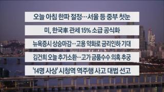 [이시각헤드라인] 12월 4일 라투이브투데이■오늘 아침 한파 절정…서울 등 중부 첫눈■강한 한기가 머무는 가운데 오늘 출근길 서울 기온이 영하 9도까지 떨어지고, 칼바람도 강하게 불 전망입니다.수도권 등 중부 지방에는 첫눈 소식도 있습니다.■미, 한국車 관세 15% 소급